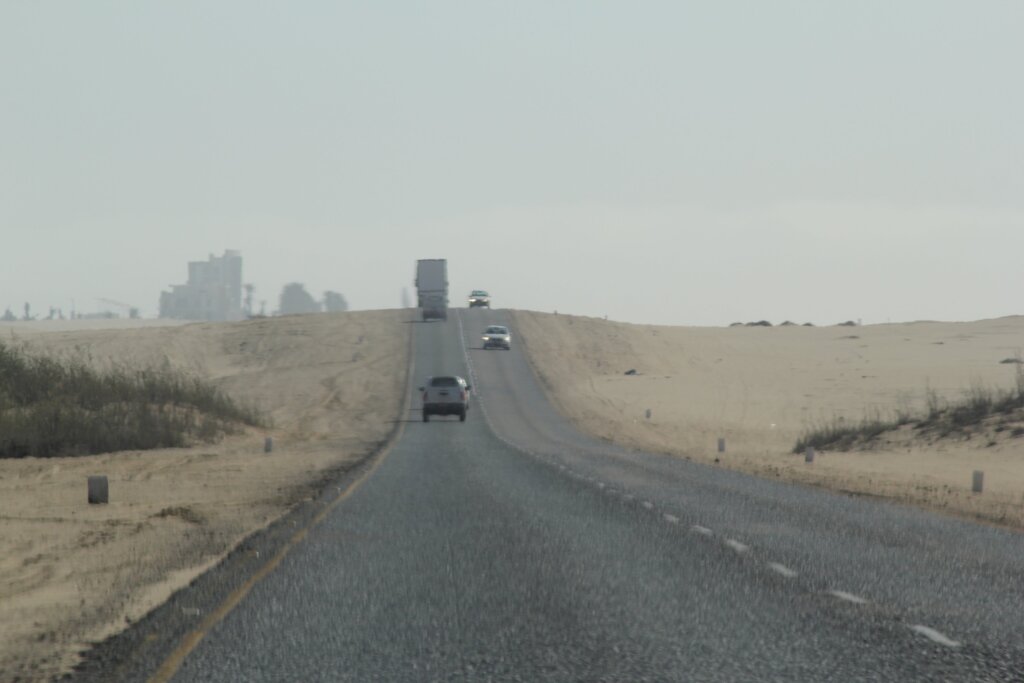 As we drove along the coastal road, the sea stretched out on our left, while the endless white dunes of the desert lay quietly to our right. This surreal drive alone felt like an adventure.
