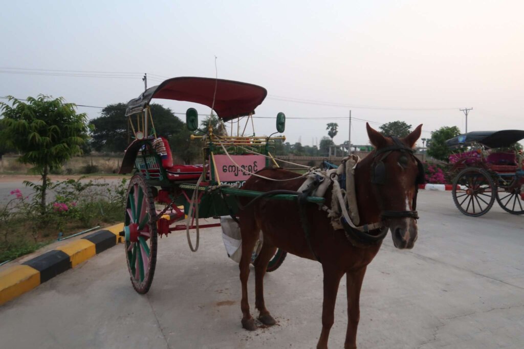 We reached Bagan at 5 AM, greeted by a swarm of taxi drivers and horse cart operators. Despite our initial attempts to negotiate for a fair taxi fare, the drivers stuck to their inflated prices. Ultimately, we opted for a horse cart at a more reasonable rate, which turned out to be an unexpectedly charming experience.
